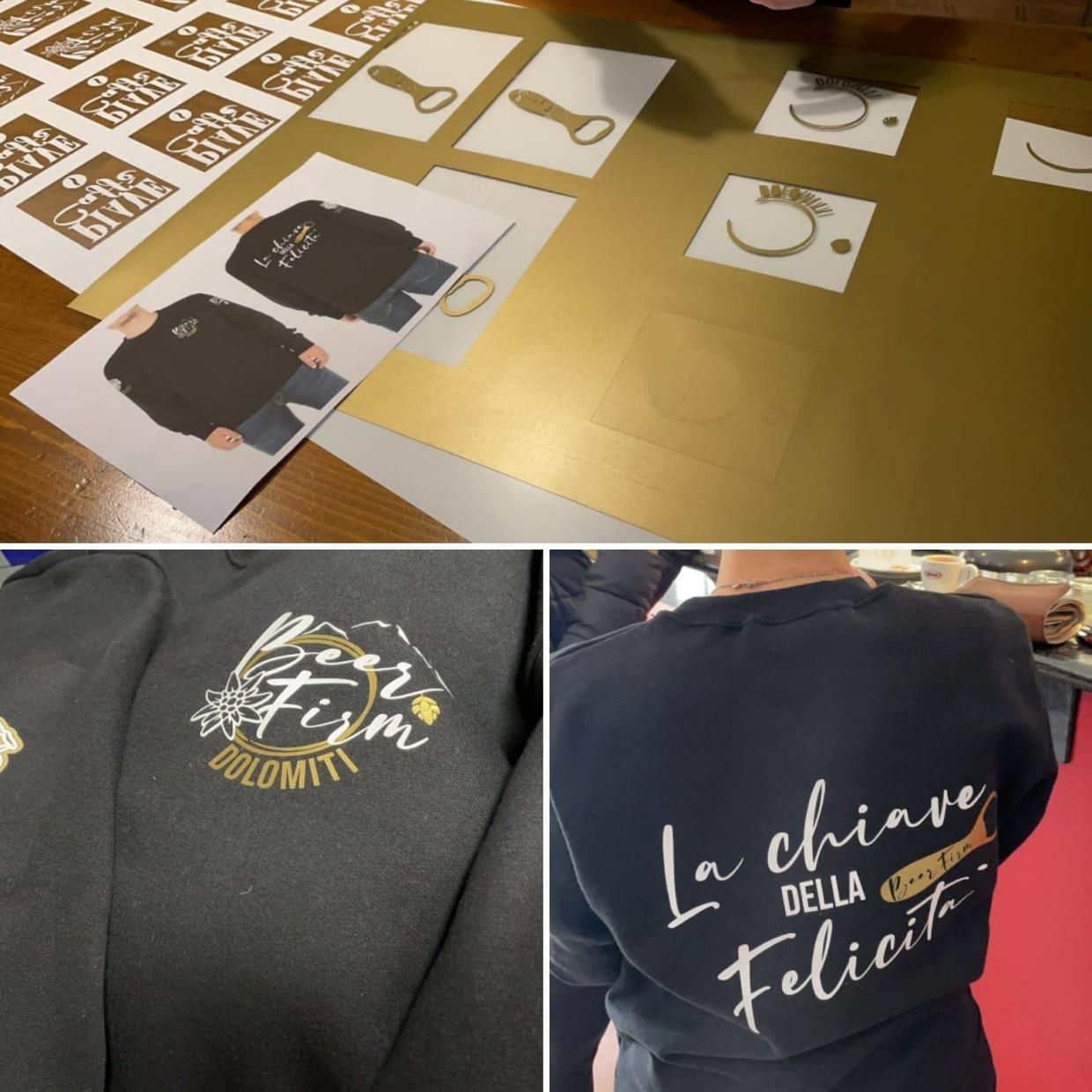 Stampa su magliette e felpe, con diverse tecnologie (stampa diretta DTG, serigrafia, sublimazione), personalizzazione di giacche, grembiuli e abiti da lavoro.