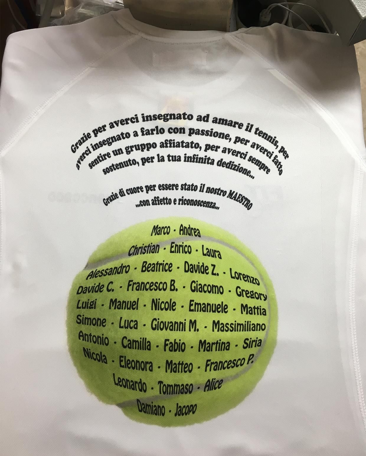 - Stampa DTG: prevista su maglie bianche, non presenta alcun rilievo e non crea riflessi negli eventuali servizi fotografici (simile al prodotto serigrafico).